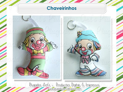 Chaveirinhos Temáticos em tecido sintético estampado e fibra siliconada.